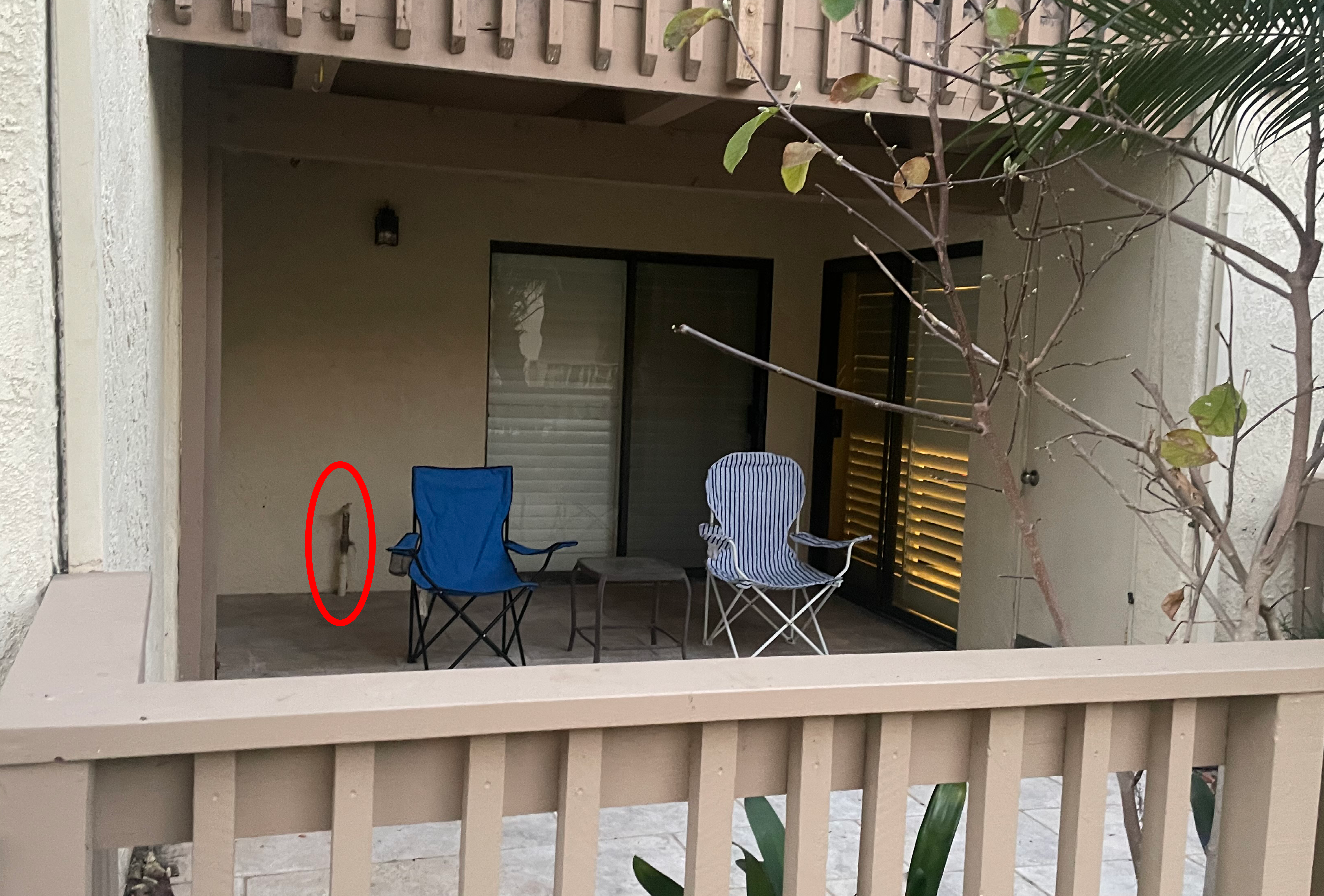 The team was able to complete the evaluation for the two Lago buildings. The 16521 Grunion two bedroom stacks were not evaluated because no one was home to allow us access to their patio. This may have been an oversight in planning and communications will be improved next time.