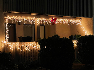 In the evening of December 21st, staring around 8PM, Harbour Vista News walk around the all the property on both side and took picture of the Christmas/Holidays Lights. These pictures are published as shown. It was very enjoyable to see how residents have decorated their units and to what extents. One resident even replaced their porch light with a green color one for the holidays. Another resident has a complete Christmas tree on their patio. If you have not taken a walking tour of the decorations, I recommend highly that you walk around and see all the lights. ■ |