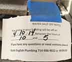 Scott English Plumbing was responsible for posting the water shut off notices. While they did post notices for the first and second day of the water shut off correctly so residents knew ahead of time to plan for the water being off, the notices for the third day were not posted until the morning of the third day. Many residents were not prepared for having the water shut off that day. Some residents complained they didn’t have water to make coffee, brush their teeth or take a shower in the morning. One resident said he had to go over to the pool and take his shower at the common area pool showers.