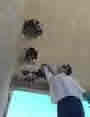 bee hives from the holes in the ceiling without first putting up scaffolding for the safe removal.