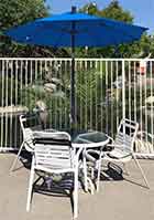 Our Association has installed four new blue umbrellas for the Pool Recreation Areas. Two of these Umbrellas have been placed at each area. They can be tilted to follow the Sun and collaspse if wind gets disruptive. These four umbrellas will provide some needed shade at each pool location. ■