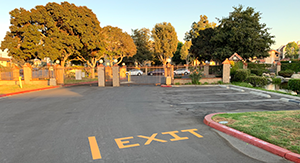 So you asked why does the newly painted Cabana roadway exit sign at the gate has a secret. It is because it serves a another purpose. This sign is placed is over the Cabana gate sensor. For years, person parking in the spaces around this new sign would back out to then leave though the Cabana Gate–only to fine it would not open. The dance would begin backup up their vehicle to move over the tripping mechanism embedded in the asphalt. But where is it embedded? The new "EXIT" sign now secretly identified its location