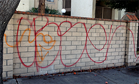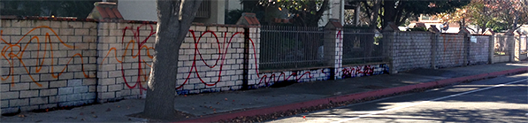 The perimeter block wall along Heil Avenue on the Grunion Side of the complex was vandalized the weekend (December 28th) with Graffiti. Harbour Vista has experienced some modest Graffiti vandalism from time to time, but never to this extents. It has taken eight days for it to be removed.