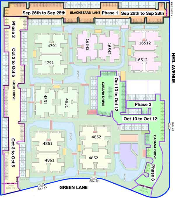 - Mail server at the Cabana Mailboxes may be interupted during Phase 3 from October 10 to October 12th.