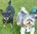 Loki loves to go to the dog park and dog beach where he can run circles and play with other dogs. While he is a little shy at first he will warm up to other dogs and have fun playing. He has his “group” of dog friends in the complex he likes to walk and play with. His best friend (BFF) is Spike (see picture), he even has sleep overs with Spike.