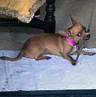 A mix of Chihuahua and Toy Terrier, Miss Darby Wellington is a friendly 13 month old puppy. Her owner obtain from her daughter in Spring Branch, Texas. about 2 months after she was born. Miss Darby Wellington comes from a litter of eight where she was the runt.
