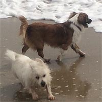 Both dogs are are very energetic and obedient. The owner has put in some great effort to stop them being interested in Harbor Vista ducks. But both dogs like to chase squirrels and birds. These dogs like their big outing at the local park and love to go to the beach for a swim. ■ |