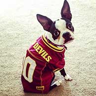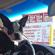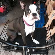 Emma who also goes by the name Mimi is a pure bred Boston Terrier. She was a one year anniversary gift from her owner’s boyfriend and just recently turned one year old on February 1st. A few favorite things that Emma likes to do is go bike riding around Huntington Beach with her owner's in her basket. Another favorite of hers is going through the "In-N-Out" drive through and having her owner's order her a meat patty with no salt. |