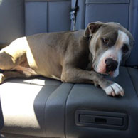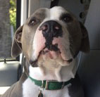 Huxley is a 6 years old blue noise pit bull mix who was rescue from the local veterinary in Calistoga, California. Huxley was a favorite at the local veterinary clinic which rescued Huxsley after being found with part of a large chain link leash still attached to his spiked collar.