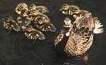 I move slowly, but he could finally not trust me anymore and took flight. Great Blue Heron can have a wing span of six feet. This one flew pass a building stairs and across a balcony into the sky. He was beautiful. Hope he returns. Anyway, one of our resident ducks complained to me that Ishould take a picture of her and her new duckling and stop gaping at the blue heron. So I obliged. ■