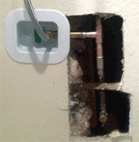 Here is an example where a plumber put in a recess plate for the ice maker line with a new shutoff valve. This is much nice than the original lines and much more rugged shutoff valve in this case.